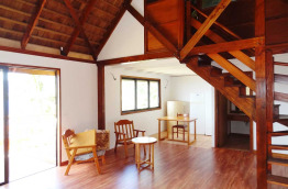 3 Family Ocean Bungalows se trouvent un peu à l’écart, car ils appartenaient auparavant à une autre pension. Parfaits pour une famille, ils sont construits en duplex : au rez-de-chaussée, on retrouve une chambre avec un lit double, ainsi que le salon avec canapé-lit. L’étage est composé d’une seconde chambre, avec deux lits simples. Ces bungalows d’environ 60 m2 pourront donc accueillir jusqu’à 4 adultes et un enfant.