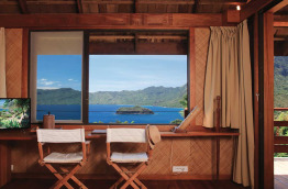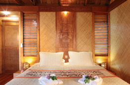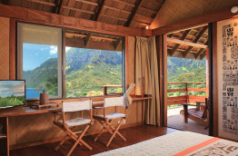 La décoration de chaque bungalow a été réalisée par des artistes marquisiens, du parquet en acajou au mobilier en rotin, jusqu'aux sculptures marquisiennes du bungalow, ou aux décorations en tapa. Ils disposent tous de l’air conditionné, ventilateur, minibar, télévision, coffre-fort et nécessaire à thé et café.