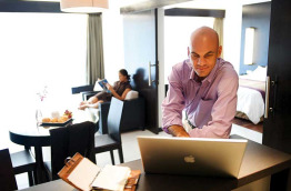 L’accès internet Wi-Fi est gratuit dans le hall de réception et les parties communes de l’hôtel, ainsi qu’en filaire dans les chambres.