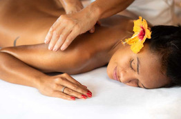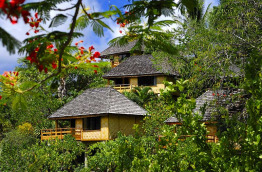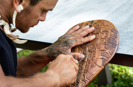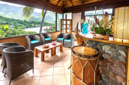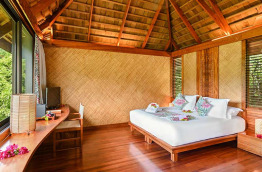La décoration des bungalows a été réalisée par des artistes marquisiens, du parquet en acajou au mobilier en rotin, jusqu'aux sculptures marquisiennes du bungalow, ou aux décorations en tapa.