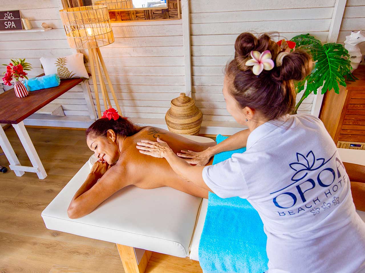 Le Spa by Opoa propose différents types de massages, gommages et enveloppements. Le fare massage est situé au bord du lagon, et vous accueillera pour de doux instants de détente.