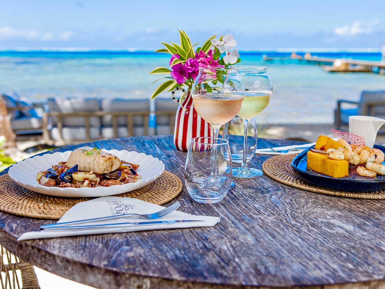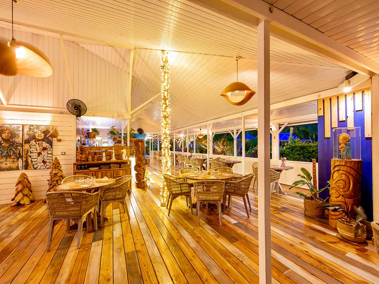 Le Beach Bar propose quant à lui une sélection de rhums arrangés et de cocktails sélectionnés, aux parfums des fruits de la Polynésie. Détendez-vous les pieds dans le sable, au son du ukulélé !
