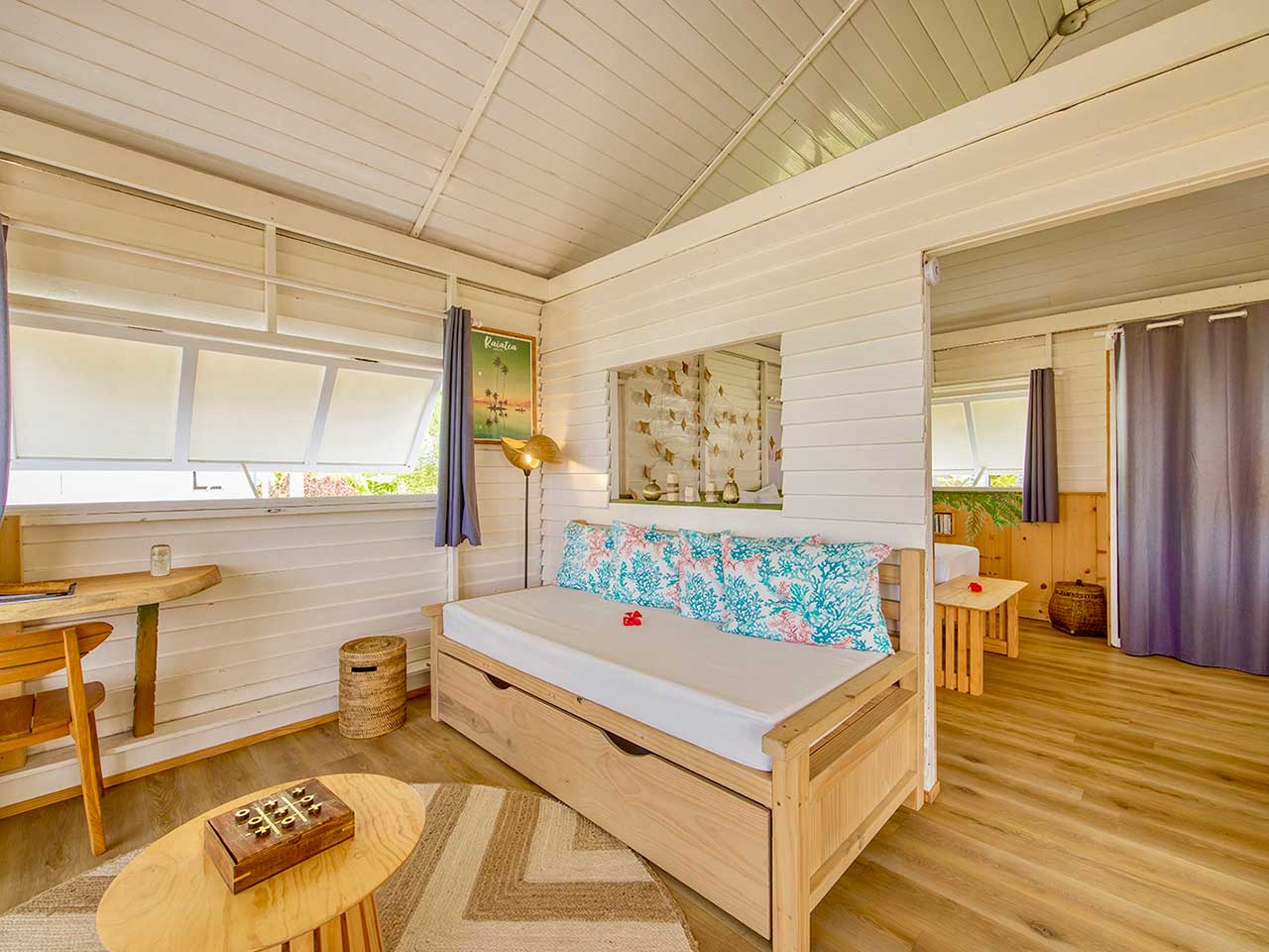 Cet établissement à taille humaine se distingue par une décoration soignée, avec des matériaux naturels et des couleurs claires. Bien équipé, moderne, il s’intègre dans un jardin fleuri et exotique : arbres fruitiers, bougainvilliers, oiseaux de paradis, hibiscus ou encore fleurs de tiaré… Entre repas savoureux, détente au bord du lagon, massages et excursions sur Raiatea ou Taha’a, vous profiterez de moments hors du temps dans cet établissement chaleureux.