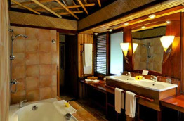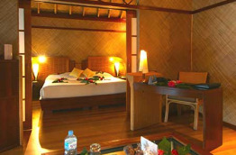 12 Junior Suite Beach Bungalows nichés sur la plage, sous les cocotiers, à deux pas du lagon. Confortables, ils font 36 m2 de surface intérieure, avec 19 m2 de terrasse.