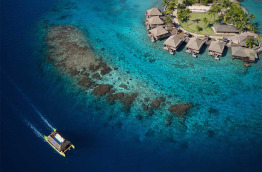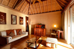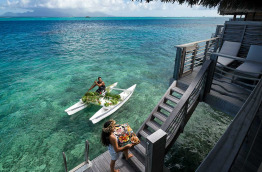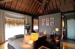 8 Motu Suite Overwater Bungalows sont construits sur pilotis autour du motu privé de l’hôtel, face au Lagoonarium et à la piscine principale. Ils mesurent environ 37 m2, et donnent sur une terrasse privative de 32 m2 pour accéder au lagon.
