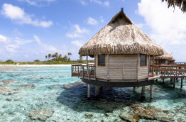 8 Overwater Suites, éloignées du ponton d’arrivée, dominent les eaux calmes et limpides du lagon sablonneux, avec une vue imprenable sur le magnifique lagon turquoise de Tikehau. De grande superficie (environ 93 m2), elles offrent de nombreux équipements luxueux, notamment offrent un accès direct au lagon depuis la terrasse.