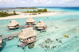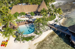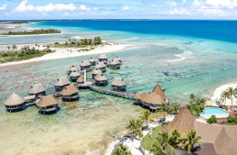 Rénové en 2024, le Tikehau by Pearl Resorts se trouve à seulement 20 minutes de transfert en bus puis en bateau depuis l’aéroport. Pour rejoindre le village principal de Tuherahera, il faudra compter seulement 15 minutes de bateau.