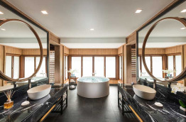 2 Presidential Overwater Villas offrent un espace de 300 m2 sur deux étages. Ces villas exceptionnelles sont composées de deux chambres, de trois salles de bains, d’un sauna, de deux dressings et d’un salon spacieux. Ses occupants profitent aussi de trois terrasses, d’une piscine à débordement, d’un bain à jets extérieur, d’un bar et d’un accès direct au lagon. C’est l’idéal pour héberger 6 adultes !