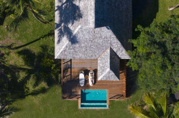 5 Tropical Endless Lagoon View Villas with Pool sont également identiques, et équipées d’une piscine privée. Elles sont situées sur les hauteurs de l’île, et offrent une vue panoramique sur le lagon. La vue est encore plus belle au coucher du soleil !