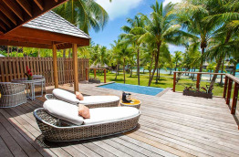 2 Beach Pool Villas se trouvent sur la plage, à quelques mètres du lagon. Elles offrent un espace de 124 m2, composé d’une chambre avec un lit king-size et d’une piscine privée face à la mer.