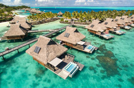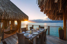 4 Otemanu View Pool Overwater Villas similaires dans l’aménagement sont tournées vers le Mont Otemanu, sommet de Bora Bora. Elles sont dotées en plus d’une piscine privée à débordement.