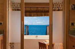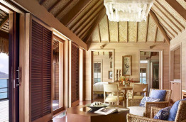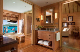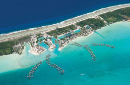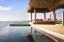 Les bungalows pilotis sont répartis selon trois catégories. Les plus nombreux, d’une surface de 100 m2, proposent quatre vues différentes : 8 Resort View Overwater Bungalow, 20 Beach View, 26 Lagoon View et 38 Mountain View. 4 bungalows Lagoon View Overwater Bungalow possèdent en plus une petite piscine sur la terrasse.