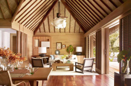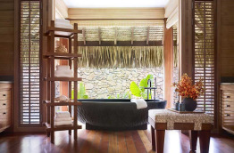 Conçus dans un style propre à l’architecture locale, bois, toits en feuilles de pandanus, magnifiques objets d’art locaux, ils proposent un cadre de vie aéré et paisible qui se caractérise par des meubles en teck traditionnels, des plafonds hauts et des portes coulissantes permettant de profiter de la vue et de la brise marine depuis la baignoire.