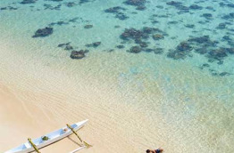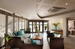 25 Overwater Bungalow : découvrez la faune sous-marine riche et multicolore, au travers du plancher de verre, confortablement assis sur le canapé, à partir de la terrasse de votre bungalow, ou en plongée libre dans les eaux peu profondes autour de votre bungalow, grâce à l'accès direct au lagon. La superficie totale est de 62 m2, y compris les espaces extérieurs.