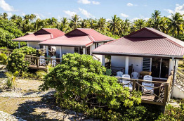 Takoto, signifiant « dormir » en polynésien, est le bungalow central. Il offre une chambre avec un lit queen-size, un espace salon avec un canapé-lit ou un lit simple, et une terrasse surélevée en bois.