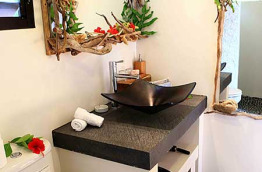 10 Beach Bungalows sont situés sur le sable, face au lagon, et profitent donc de la plus belle vue. Ces bungalows sont déjà équipés de l'air conditionné.