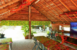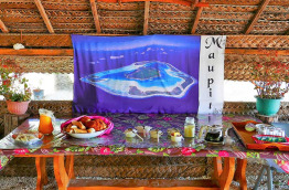 Le petit-déjeuner et le dîner sont inclus dans le tarif de chaque séjour. Rendez-vous sous le Fare Pote traditionnel face à la mer, où se trouve la grande table commune.