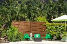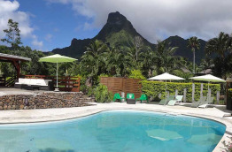 Ils sont installés dans un magnifique jardin botanique, et répartis autour d’une piscine et de son Fare Pote.