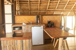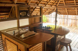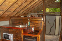 Construits à la main par le propriétaire, les bungalows sont en bois et en pierre, dans un style polynésien. Spacieux et bien aménagés, tous disposent d’une cuisine équipée, d’un coin salon, d’un ventilateur et d’un très grand lit sous une moustiquaire. Vous apprécierez aussi leur salle de bains avec douche à ciel ouvert.