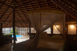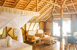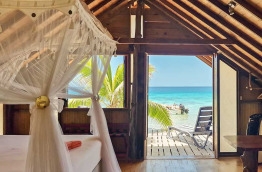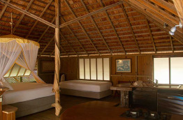 2 Beach Bungalows sont installés en bordure de lagon. Chacun est doté d’un confortable lit king-size. L’un d’entre eux peut accueillir jusqu’à 3 personnes, et l’autre 4 personnes, en ajoutant 1 ou 2 lits simples.