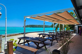 Le restaurant Le Sunset est installé en bord de plage, avec une vue magnifique sur le lagon. Il propose une cuisine familiale avec des spécialités tahitiennes, mais aussi françaises et italiennes. Les plats sont copieux, les confitures maison. Le petit-déjeuner est servi sous forme de buffet.