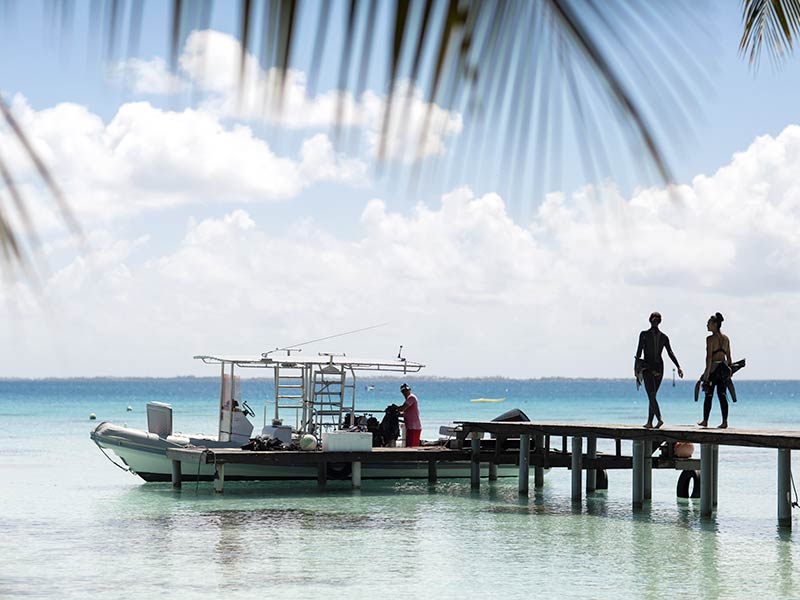 Le centre de plongée passera vous chercher le matin pour explorer les sites de la passe Nord de Fakarava.