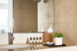Également situées dans les plus hauts étages, les Deluxe Executive Room sont plus spacieuses, et disposent d’un lit king-size.