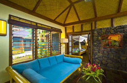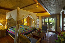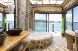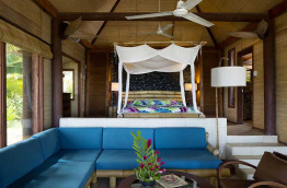 6 Over The Water Fale, construites en 2013 sur pilotis au-dessus du lagon. Elles comprennent une grande chambre et de grandes terrasses extérieures. Le salon et la salle de bains donnent sur des terrasses, et vous pouvez ouvrir les baies vitrées pour laisser entre l’air. A l’intérieur, le style est tout aussi original, dans la lignée des autres chambres de l’hôtel, avec beaucoup de bois et de pierre.