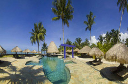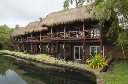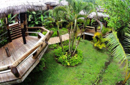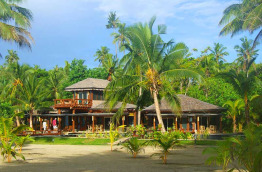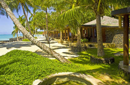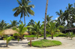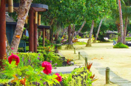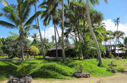 Les logements et les parties communes sont dispersés sur un grand terrain très verdoyant qui descend en pente douce vers la mer. La petite plage est jolie, mais à marée basse, la mer se retire assez loin dans cette partie de l’île, et vous apprécierez alors la belle piscine de l’hôtel. La plage devant les « Beach Fale » est une plage aménagée derrière un muret en pierre, ce qui est bien pratique pour les chaises longues.