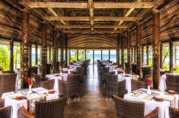 Le South Pacific Restaurant, avec vue sur l’Océan Pacifique et Savai’i, propose des spécialités de la cuisine des îles du Pacifique Sud, en plein air.