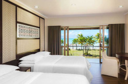 Les 133 chambres et suites du Sheraton Samoa Beach Resort sont réparties dans 6 bâtiments sur deux niveaux, de part et d’autre des parties communes.