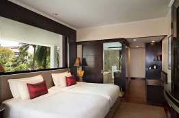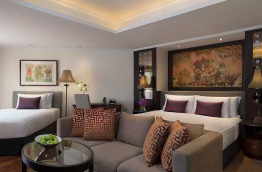 Réparties dans trois bâtiments à travers l’hôtel, les 281 chambres et 95 suites sont équipées d'un lit double ou de deux lits simples. Elles sont décorées dans le style asiatique moderne, et présentent toutes un balcon privé et une salle de bains en marbre avec baignoire et douche séparées. Pour votre confort, vous aurez également à votre disposition une télévision, un coffre-fort, un bureau, un minibar, un nécessaire à thé et café, l’accès internet Wi-Fi et l'air conditionné.
