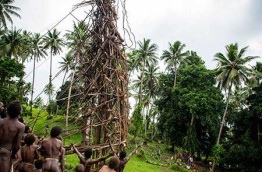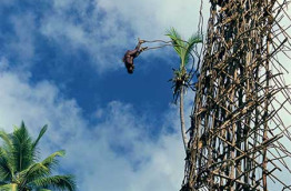 Ces tours constituées de branchages peuvent atteindre jusqu’à 35 m de hauteur. Chaque homme ou enfant qui saute est responsable de sa tour et de son plongeoir. Elles sont impressionnantes, solides, et à la fois suffisamment souples pour résister au vent et au choc du plongeon. Le cérémonial est tel que les femmes dansent en bas pendant que les hommes se préparent à sauter. Juste avant le saut, le silence est total, l’homme ou le garçon fait un court discours et se lance dans le vide.