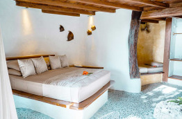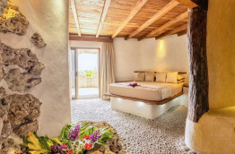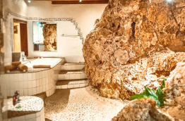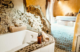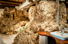 4 Rock Suites sont plus spacieuses et luxueuses. Situées au rez-de-chaussée, elles offrent chacune une petite terrasse privative. Vous serez surpris par les formations de roches et de corail qui se trouvent à l’intérieur, de style troglodyte, donnant un charme incontestable à ces chambres. Elles peuvent accueillir jusqu’à 2 personnes dans leurs 45 m2.