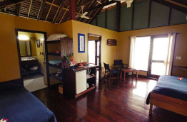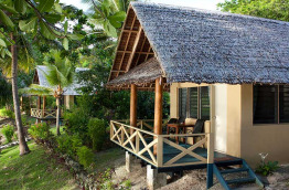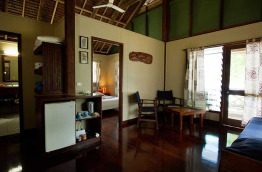 Les One Bedroom Bungalows sont spécialement adaptés pour les familles, ils sont, soit en front de mer, soit en retrait dans les jardins. Ils sont composés d'une chambre avec un lit double, et un grand salon équipé de deux lits simples. Un troisième lit peut être ajouté sur demande bien que, du coup, la place sera fortement limitée. Contrairement aux Studio Beachfront Bungalows, le sol est en bois, et la terrasse est encore plus spacieuse.