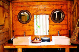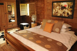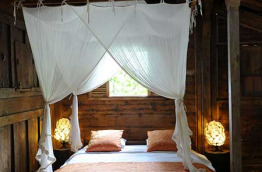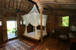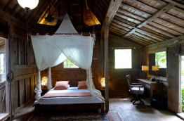 Les villas sont spacieuses, meublées avec goût, décorées de pièces d’antiquité, et avec des objets insolites. Chacune est pourvue d’une salle de bains, toute en bois, dans une « annexe » de la villa, reliée à la chambre par un couloir extérieur. La chambre est spacieuse et comprend un lit avec moustiquaire, un bureau, une table et des chaises. À l’intérieur de la villa, vous bénéficiez également d’un réfrigérateur, coffre-fort, nécessaire à thé et café, ventilateur, mais pas d’air conditionné. La ventilation naturelle sera plus saine, les villas ayant été construites avant l’ère de la climatisation, la circulation de l’air est facilitée par les ouvertures. Chaque villa est isolée, nichée dans la végétation, et se trouve directement en bord de plage. Deux chaises longues sont mises à disposition devant les villas, et la terrasse est équipée d’un confortable sofa extérieur pour le repos ou la lecture en journée.